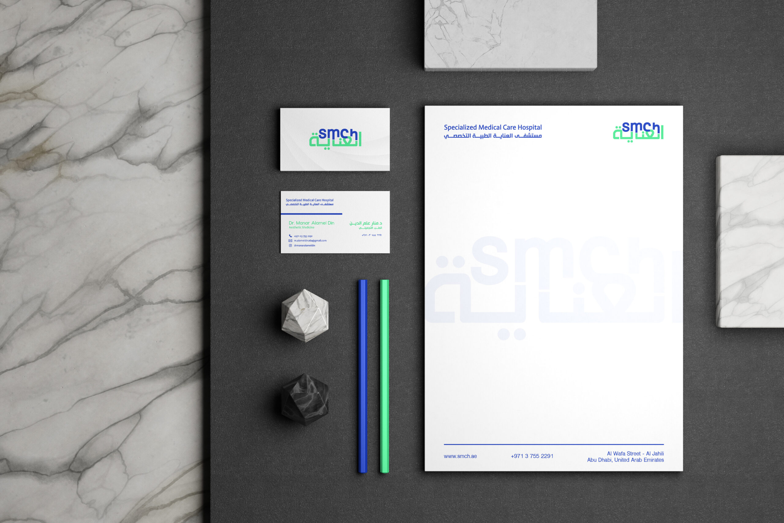 We were in charge of their branding and our aim was to showcase an innovative and professional look that has both Arabic and English.